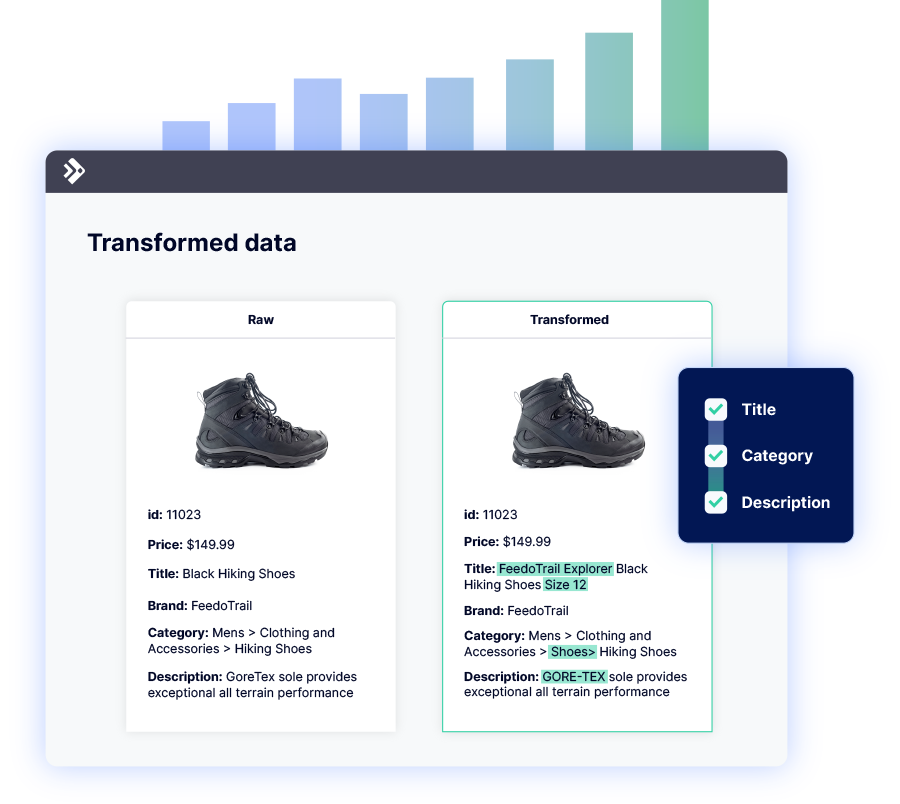 Dynamic Feed Updates: Keep up with changing product data and evolving requirements effortlessly, as our platform automatically adjusts values in your feeds to ensure precision and uniformity.